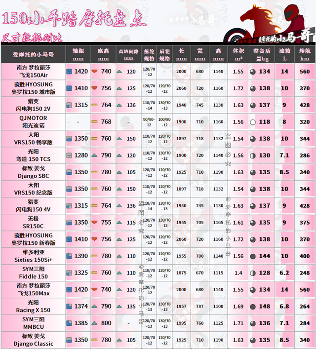 透过上头的尺寸数据对比,可以看出当排量来到150cc级别之后,小踏板们仍是启动有了很大的参数相反,不管是轴距如故车长,参数的高下浮动如故蛮大的。是以咱们如故一项一项的拆解来看。