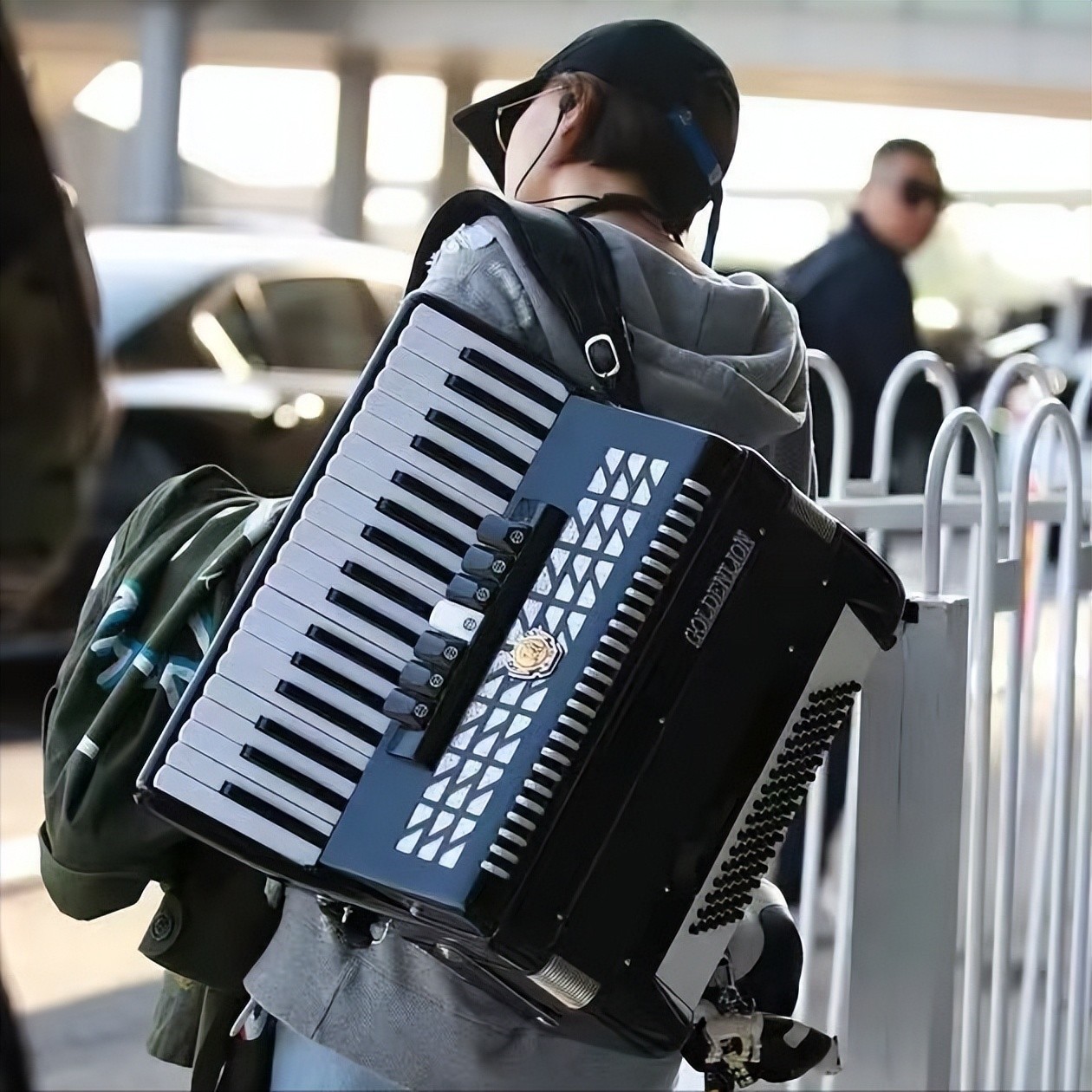 机场闲居可见她佩戴乐器或滑板,展现出特有个性魔力。