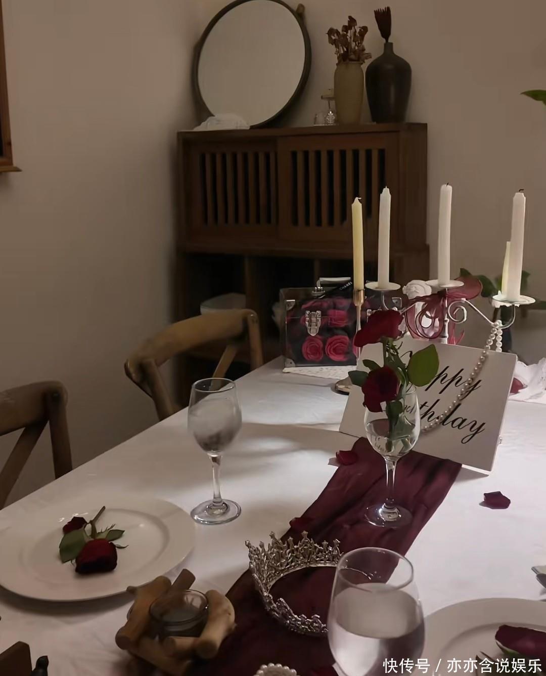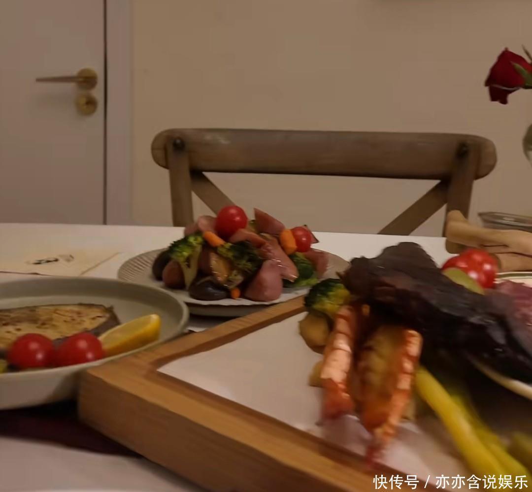 除了蛋糕,金莎还非常交接了吃西餐的餐具,烛炬防碍,还有玫瑰花点缀,盘子里装着孙丞潇作念的牛排和沙拉,每一个地方齐太纵脱了,金莎对男一又友很上心,两个东说念主进步越合拍呢。
