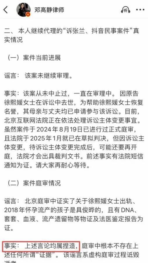 张兰看到女儿真的被逼急了,也没再连续作妖。 而是玄机地转动话题,连续卖货,念念要等风云曩昔。 有东说念主念念等,有东说念主则念念趁着热度再锤一拳。 9月6日,邓高静看成大S生前的代理讼师,发长文声明:要上告张兰和汪小菲。