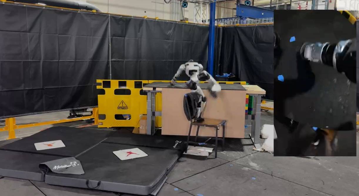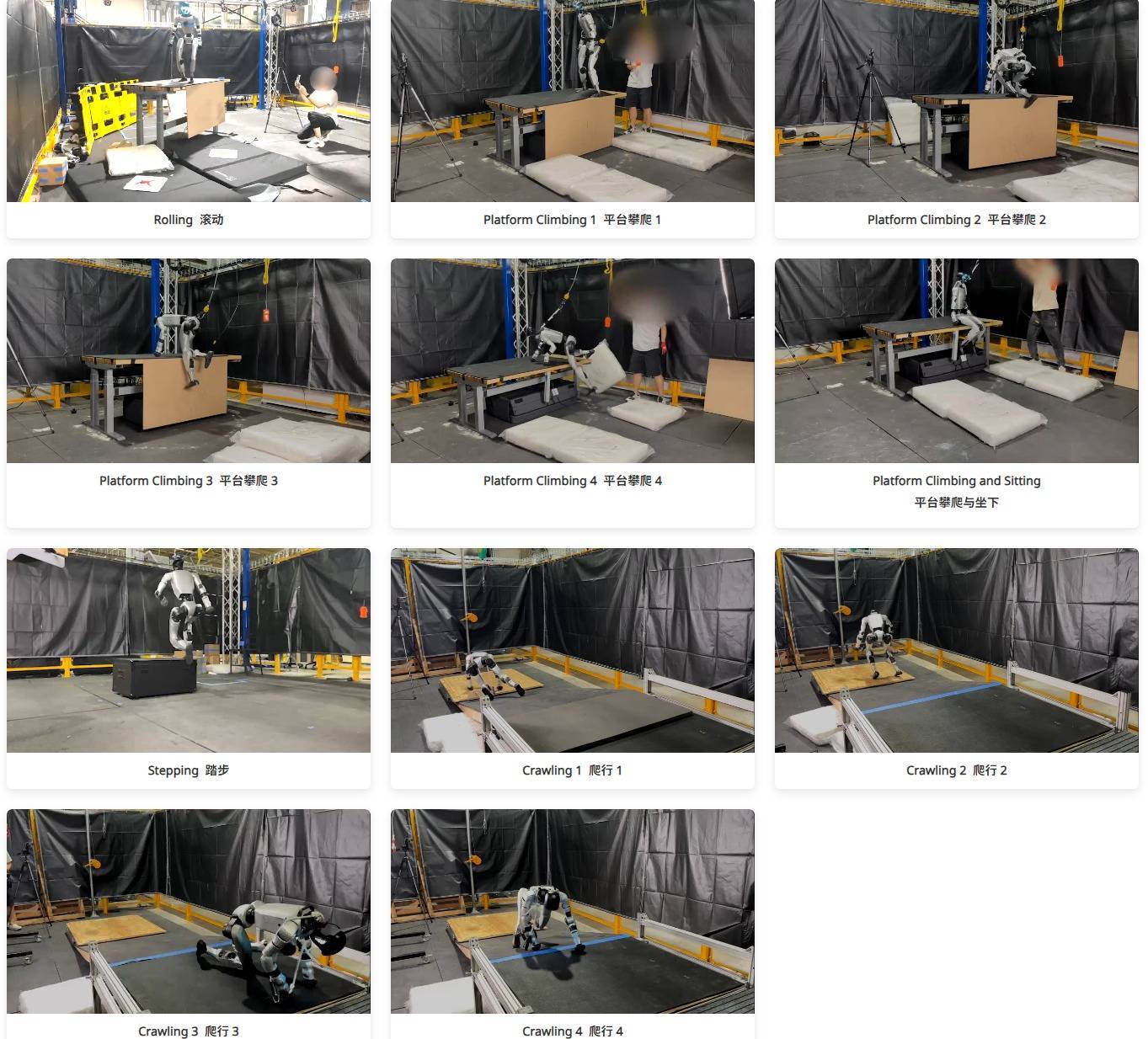 该团队放出了多个演示案例,包括翻腾、爬桌子、跳上小箱子、爬行等。