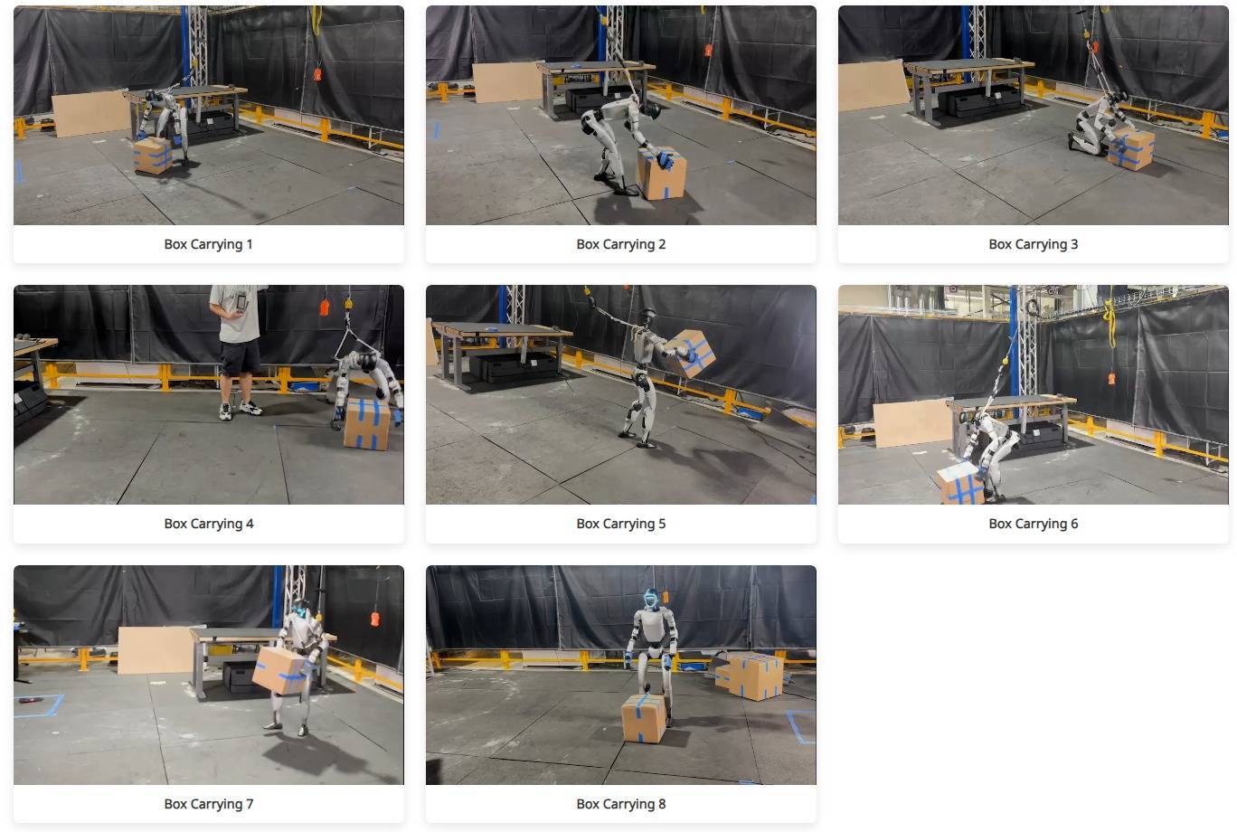 此外,OmniRetarget 省略让东说念主形机器东说念主以多种立场进行绽放操作,比如 8 种搬箱子的动作。