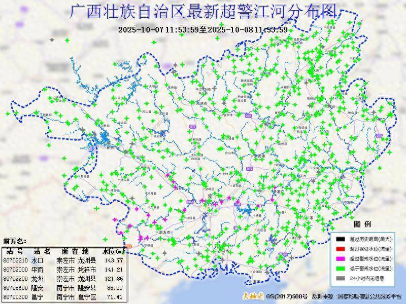 南宁水文中心于10月8日9时升级发布急流橙色预警,将南宁水文测报三级救急反馈耕种为二级救急反馈。提请关系区域的计划单元及社会公众密切怜惜雨水情变化,加强防护,实时避险。